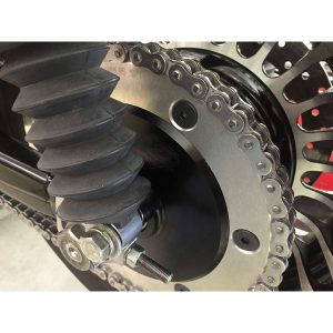 Simply identify what finish of chain you wish to run, and we’ll supply you with everything you’ll need for the conversion. Contact us to recommend what final drive ratio will work best for you, or choose your own (Front: 24 – 25 – 26 ; Rear: 50 – 52 – 54). 120 link chains are supplied, which must be shortened to fit.