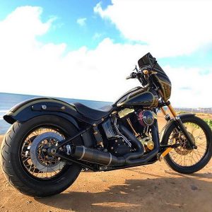 • Bob Cats for Softail® models have stepped header pipes and an upturned muffler body that increases ground clearance on lowered motorcycles. Not recommended for bikes with full-size saddlebags such as Heritage® Softail® Custom models. Bob Cats will fit Rocker® and 2009 CVO Softail® Springer® models with “ribbed” oil tanks.