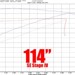I just installed screaming eagle max flow air cleaner, zippers 472 cam kit, heavy duty clutch springs, cat delete and pysco mufflers. I was disappointed on the numbers 129tq/107hp on dyno. The builder said his dyno is sting. That being said you grab full throttle at 10mph roll front wheel is up in the air, 2nd gear spins going sideways with front wheel in the air and 3rd gear does same thing. The bike is evil first 3 gears. I can so a 4k roll on in 1st gear and brings front wheel up 2ft and carries it. I’ve ran zippers for 25yrs. This is still a 114″ motor. Hope this review helps. I build race cars and many fast bikes. I’m very pleased 0 to 100mph hit.