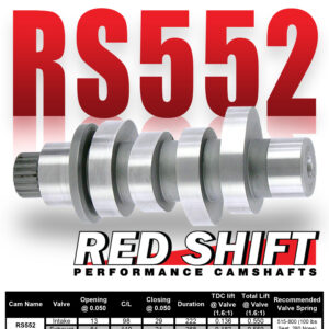 The Red Shift 552 is a power cam for modified M8 engines. The Red Shift 552 is designed to provide a strong broad power torque cam with more peak HP for highly modified M8 engines. The RS 552 is an excellent choice for riders who demand the best overall power for Torque and HP.