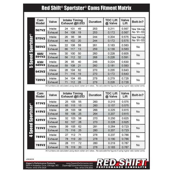 Red Shift Cams® Performance Cams for 1991-up Sportster® and Buell XB® Engines