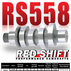 Red Shift Cams® RS558 grind is another power cam from the Red Shift Cams® platform for modified Milwaukee-Eight® engines. It is designed to provide a strong power curve with additional peak power when using with high flow heads, induction and exhaust.