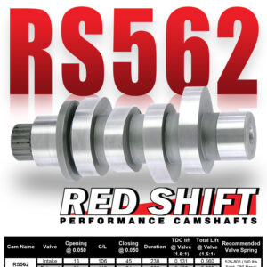 The NEW Red Shift RS562 grind is another power cam from the Red Shift cam platform for modified M8 engines. The Red Shift RS562 cam is designed to provide a strong power curve with more peak power when using with high flow heads.