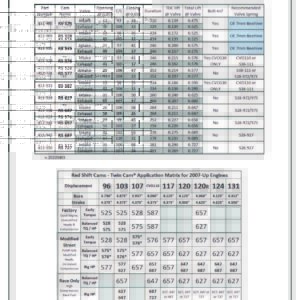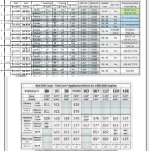 Red Shift® Twin Cam® Cams Fitment Matrix