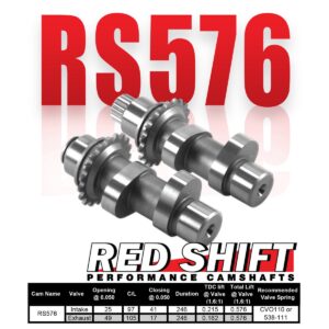The Red Shift Cams® RS576 was developed off of the success of the RS575 cam, with a ramp design to specifically work with engines with dual valve springs and heavier valves that are present in CVO engines or with other aftermarket dual springs.