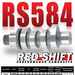 The new Red Shift RS584 grind is another power cam from the Red Shift cam platform for modified M8 engines. The Red Shift 584 cam is designed to provide an exceptionally strong power curve with strong peak power when using with high flow heads, induction and exhaust.