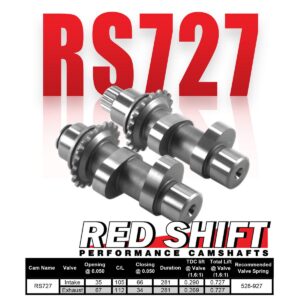 The RS727 is a racer’s favorite. This cam was originally intended for drag racing, yet widely used in LSR, Bagger racing and other special high performance applications.