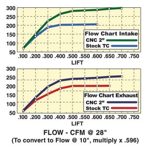 Our High Output 2.0”Twin Cam© heads are designed for larger displacement, 4 inch+ bore engines. Both ports feature more extensive CNC porting and the intake valve seat is changed and valve size is increased to 2.0 inch. The combustion chamber is enlarged to 97cc and un-shrouded for increased intake flow. Stainless steel valves, Step-Lock guides, Viton® seals and high lift valve springs are installed after the seatwork is finished on our Serdi equipment. These heads are also machined for and include compression releases (on non-ACR equipped heads). Used on our 4.125″ bore Muscle 107”, 117”, 120” and 124” engine kits. This is the finest modified Twin Cam© head you’re likely to find anywhere!