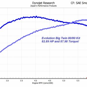 Zipper’s 80/80 kit for Evolution Big Twins is still as popular as ever! Its roots go back to the 80’s, and we named it 80/80 due to the fact that it easily delivers over 80 HP from 80”. Your cylinder base and head gasket surfaces are both decked true to stop those pesky leaks that EV’s are known for. We precision-fit forged 10.5:1 pistons to them. Your heads receive CNC porting to Zipper’s Stage III with 1.900” intake and 1.630” exhaust valves riding in Step-Lock guides with new valve springs and viton seals. Our Red Shift 559 cam is included with a new full compliment cam bearing; a steel breather gear replaces the factory plastic gear, and shims are included to set the end play on the cam and breather gear. Pro-taper pushrods control the valves and a top end/cam chest gasket set is included.