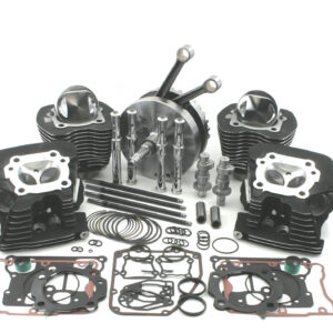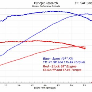 Zipper’s Sport 107” Kit for ’99-’06 Twin Cam® 88” engines greatly improves the all-around power output of the 88” Twin Cam® engine. The Sport 107 is a great choice for the rider looking to give new life to a tired or failed engine. Over 100 ft/lbs of torque is available from 2,400 to 5,200 RPM, while Horsepower is a linear line to 110+. A new 4-3/8” stroke crankshaft replaces your factory 4” stroke crank. Your cylinders are decked and sized for 3.937” forged pistons, while your heads are modified with Zipper’s high velocity Stage II CNC porting. Our Red Shift 575 cams and Dual-Piston Tensioners ensure valve train stability; Pro-Taper pushrods with EZ-Adjust covers are included with top quality gaskets. This kit delivers excellent results with the factory throttle body and injectors, keeping costs down.